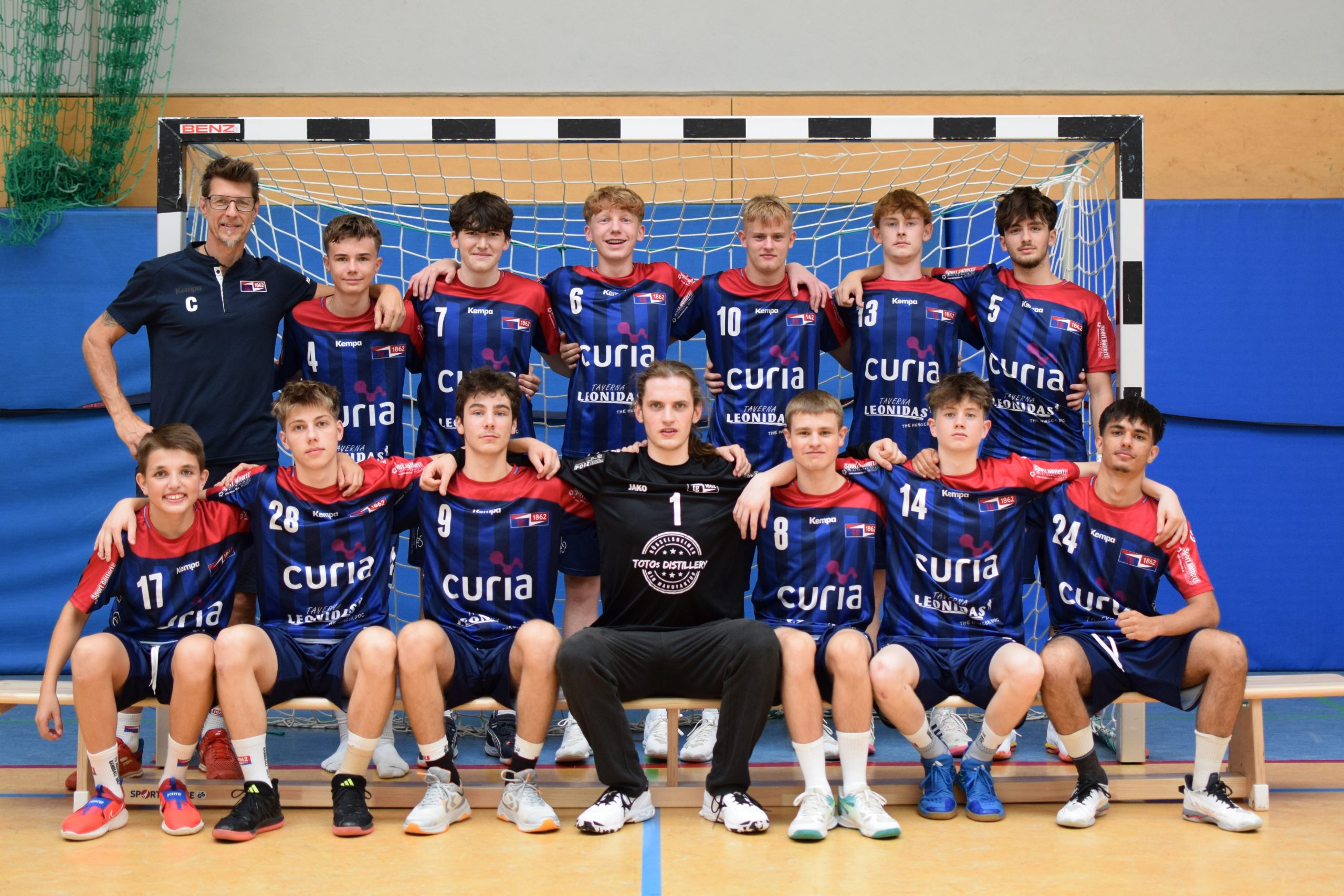 Hinten: Frank Walther (Trainer); Moritz Schleidt, Christian Hollingshaus, Philipp Seibert, Darian Steger, Lenn Anthes, Jonas Leim