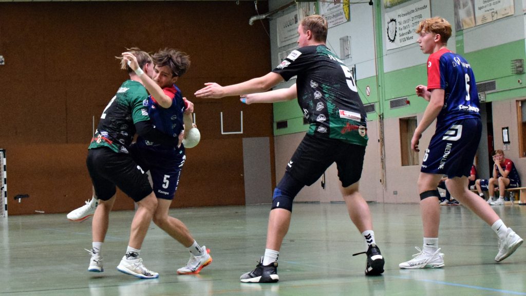 Wir erlebten ein rasantes und spannendes Spiel – es war ein Spiel auf absoluter Augenhöhe, in dem uns eine Schwächephase in der ersten Halbzeit von 0:6 Toren, die Chance auf den Sieg kostete. Es ging Hin und Her – in der 13. Minute führten wir 8:7. In der 20. stand es noch 11:11. Dann folgte die Schwächephase – Abschluss-Schwäche gepaart mit schlechtem Rückzugsverhalten sorgten nach dem 11:11 zu einem Stand von 11:17. Mit 15:18 ging es in die Halbzeitpause. Unser Gegner überrannte uns einfach viel zu oft im Überlaufangriff – hier fanden wir kein Mittel. Bei Abwehr im Positionsangriff des Gegners und bei unserem Positionsangriff lagen die Vorteile bei uns – dies langte aber nicht unser schlechtes Rückzugsverhalten zu kompensieren. Also, mussten wir uns nach starkem Kampf doch geschlagen geben. Herausragende Spieler an diesem Tag waren Tim Kritz, mit unzähligen Paraden im Tor und Lenn und Luka im Angriff, die stets Verantwortung übernahmen und auch kreative Lösungen fanden.