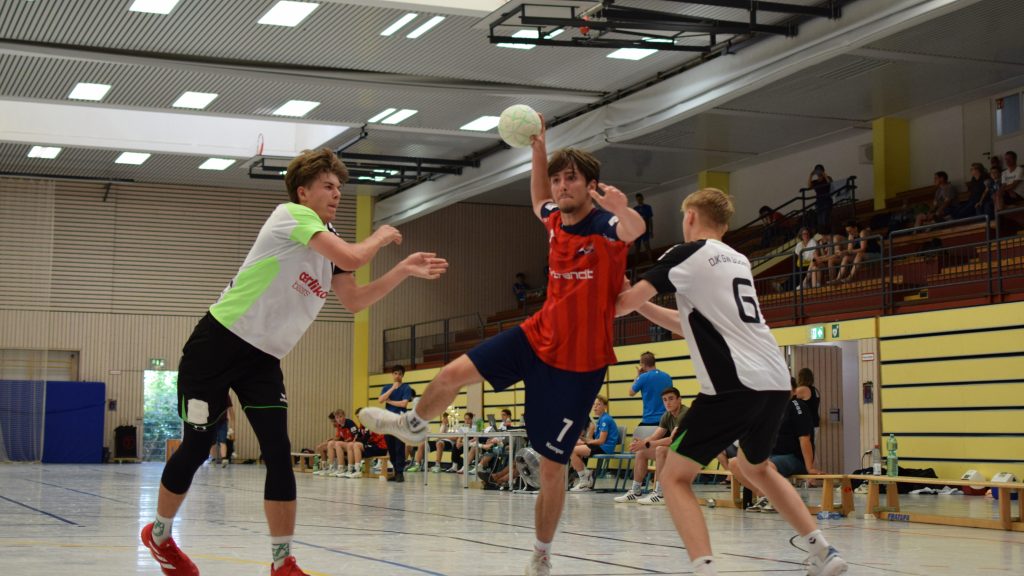 Das Turnier beim TSV Speyer am 28.6.2025 konnten wir durch 3 von 3 Siegen (auf BOL-Niveau) für uns entscheiden. Und das sogar bei tropischen Temperaturen. Wir hatten uns ja dafür entschieden keine Beachhandball-Sommerturniere zu spielen, sondern uns gezielt auf Hallenhandball vorzubereiten. Wir waren abwechslungsreich am Werke – waren, z. B. in der „Kick-Mit-Halle“ zum Fußballspielen und haben weitere kreative Trainingseinheiten durchgeführt.